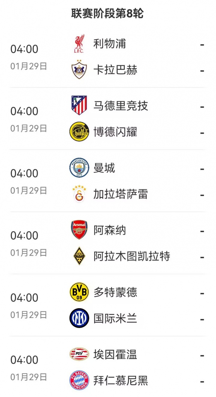 巴萨、葡萄牙体育、曼城、马竞、亚特兰大、国米、尤文、多特、加拉塔萨雷、卡拉巴赫、马赛、勒沃库森、摩纳哥、埃因霍温、毕尔巴鄂竞技、奥林匹亚科斯